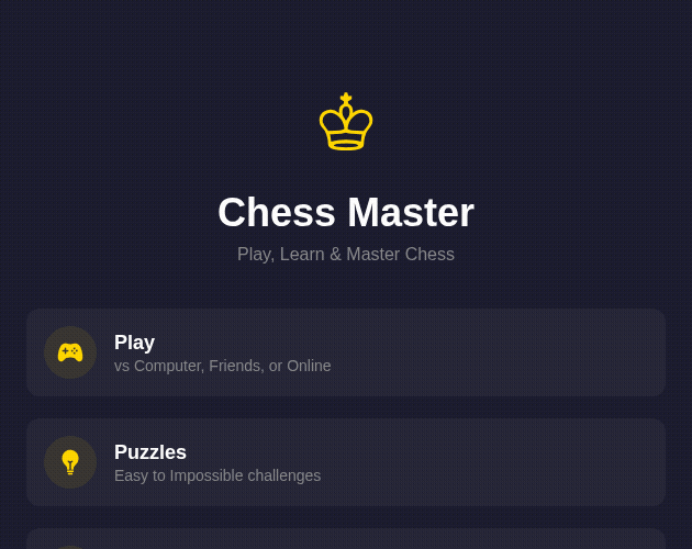 Built with precision and care, Chess Master delivers a polished and immersive chess experience right in your browser.